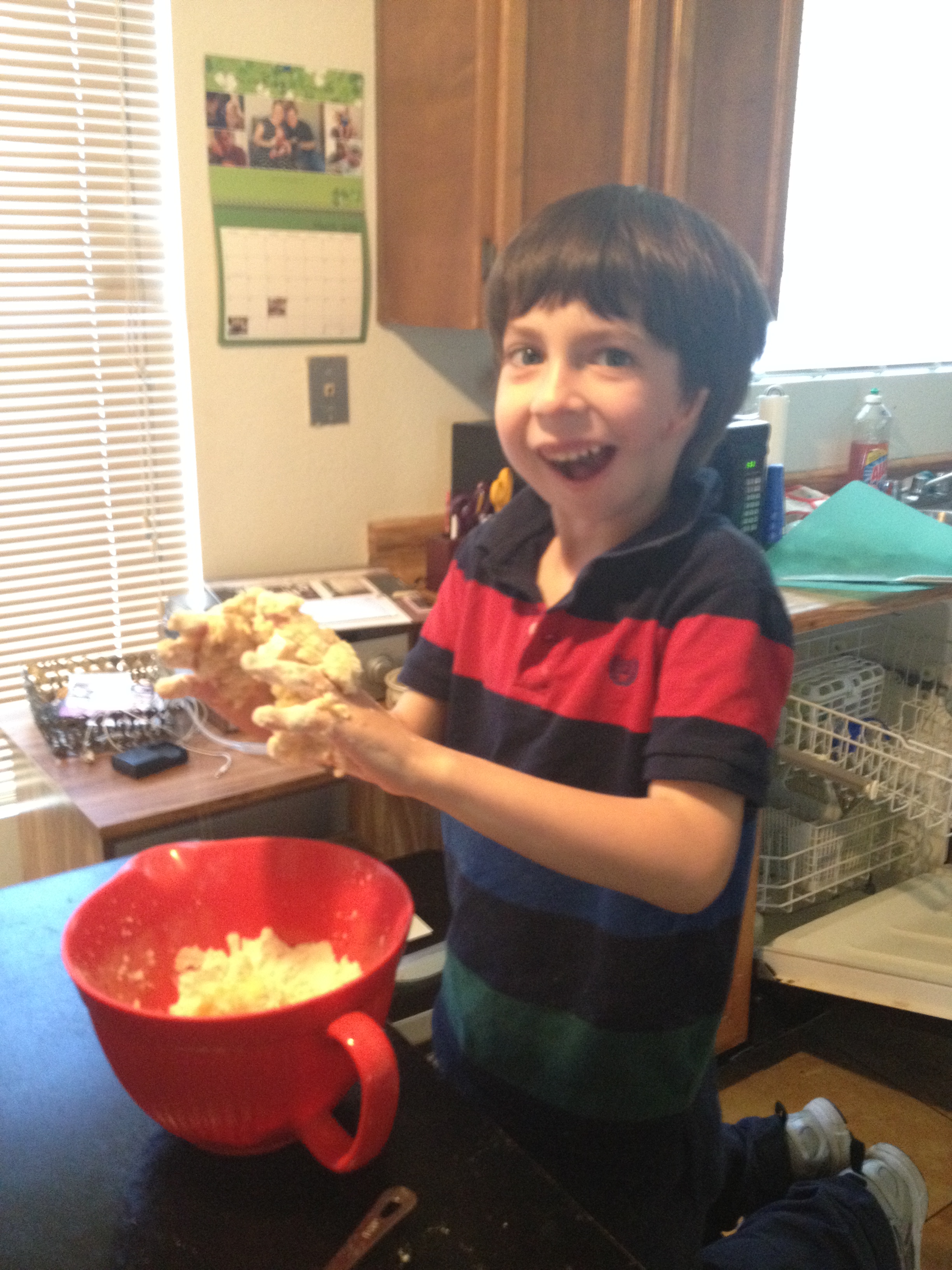 He’s on spring break so we got to spend a day with him and in his honor I decided to theme this week’s baking project around pb&j… this entry actually has TWO projects in one- the PB is Peanut butter cookies: