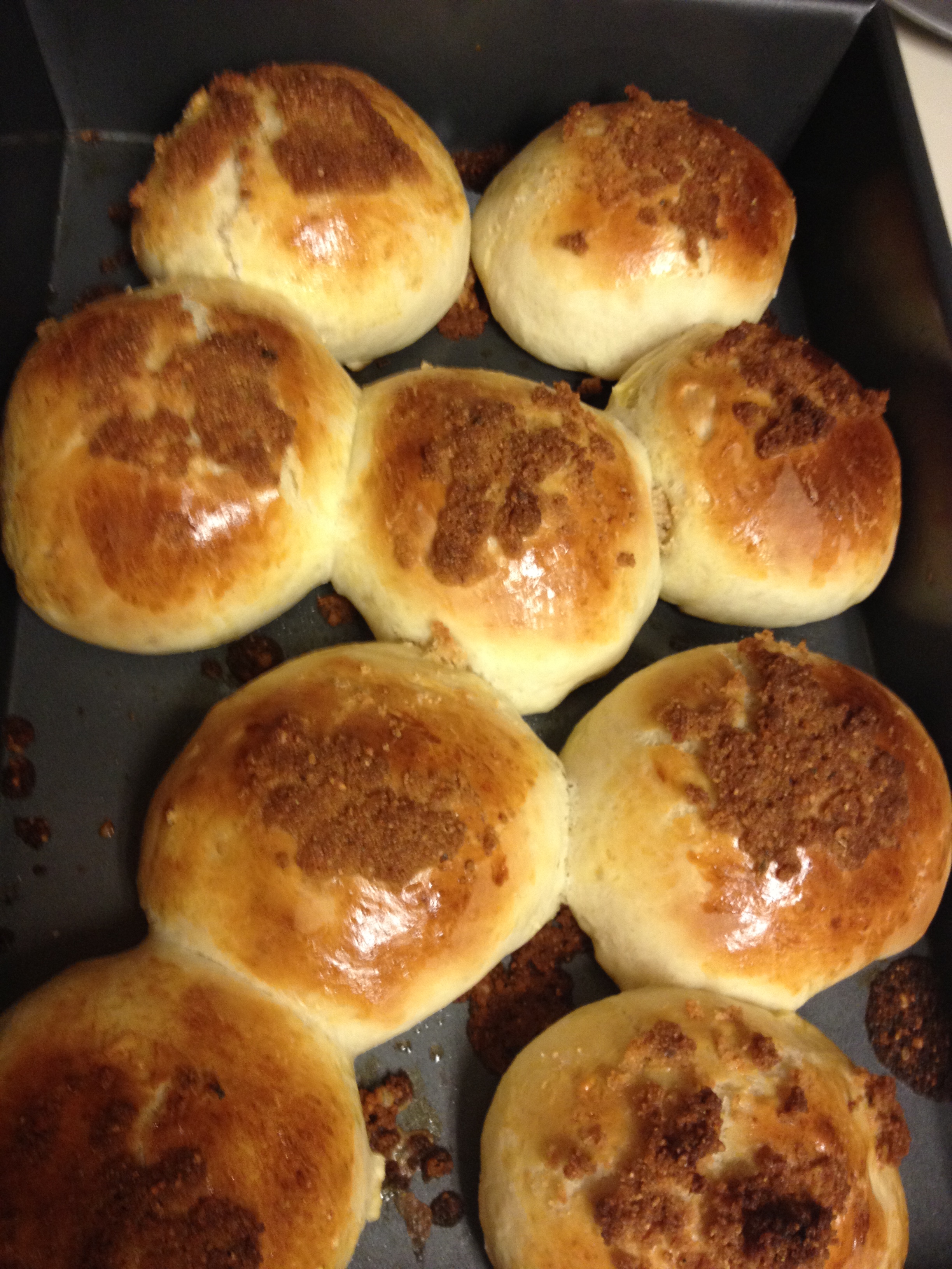 These turned out to be a little different than I expected, but definitely worth the effort. It takes a little over an hour to make these, but much of that time involves waiting for dough to rise so you can plan to do other things (or dishes) during that time.