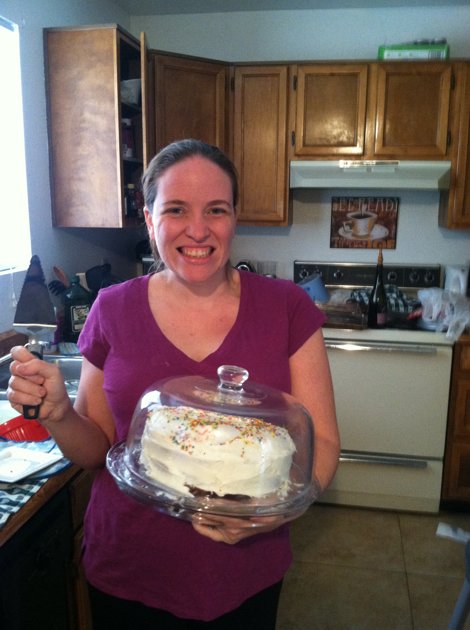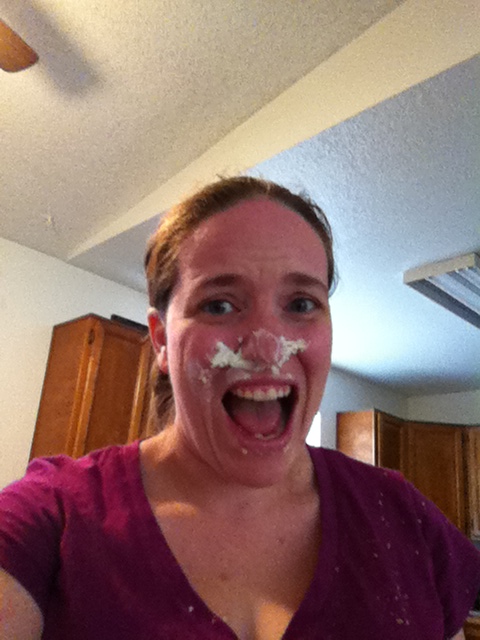 It was a BLAST. I feel like a strength in our relationship is the amazing amount of laughter it contains and we had laughter in abundance, even when I got frosting up my nose (thanks honey…) There was a video of it but I can’t get it to upload so the post-smash pictures will have to do: