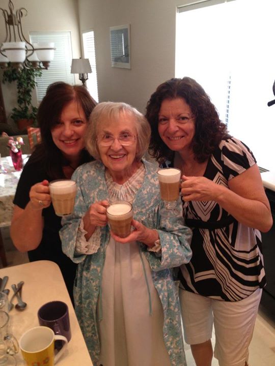 My grandma sipping coffee after her very first sleepover for her 92nd birthday. Doesn’t she look amazing! Coffee is probably a key to her longevity…