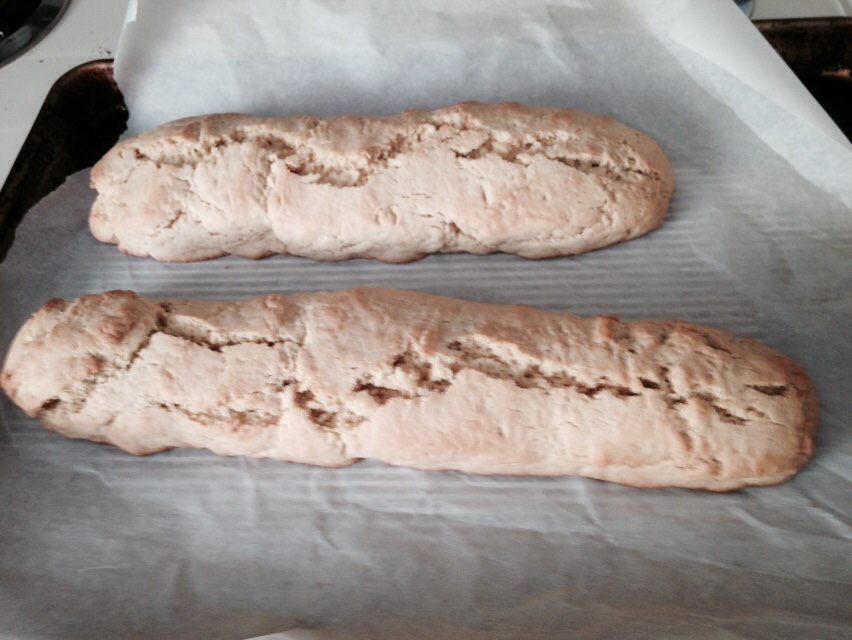 You bake the dough in log forms and then cut them after baking them for a bit. Then you finish baking them for a few minutes on each side. It’s hard to wait for the logs to cool just the right amount so they are not going to burn you when cutting but also not going to crumble apart! The thinner you slice the harder it is to keep them from crumbling. After