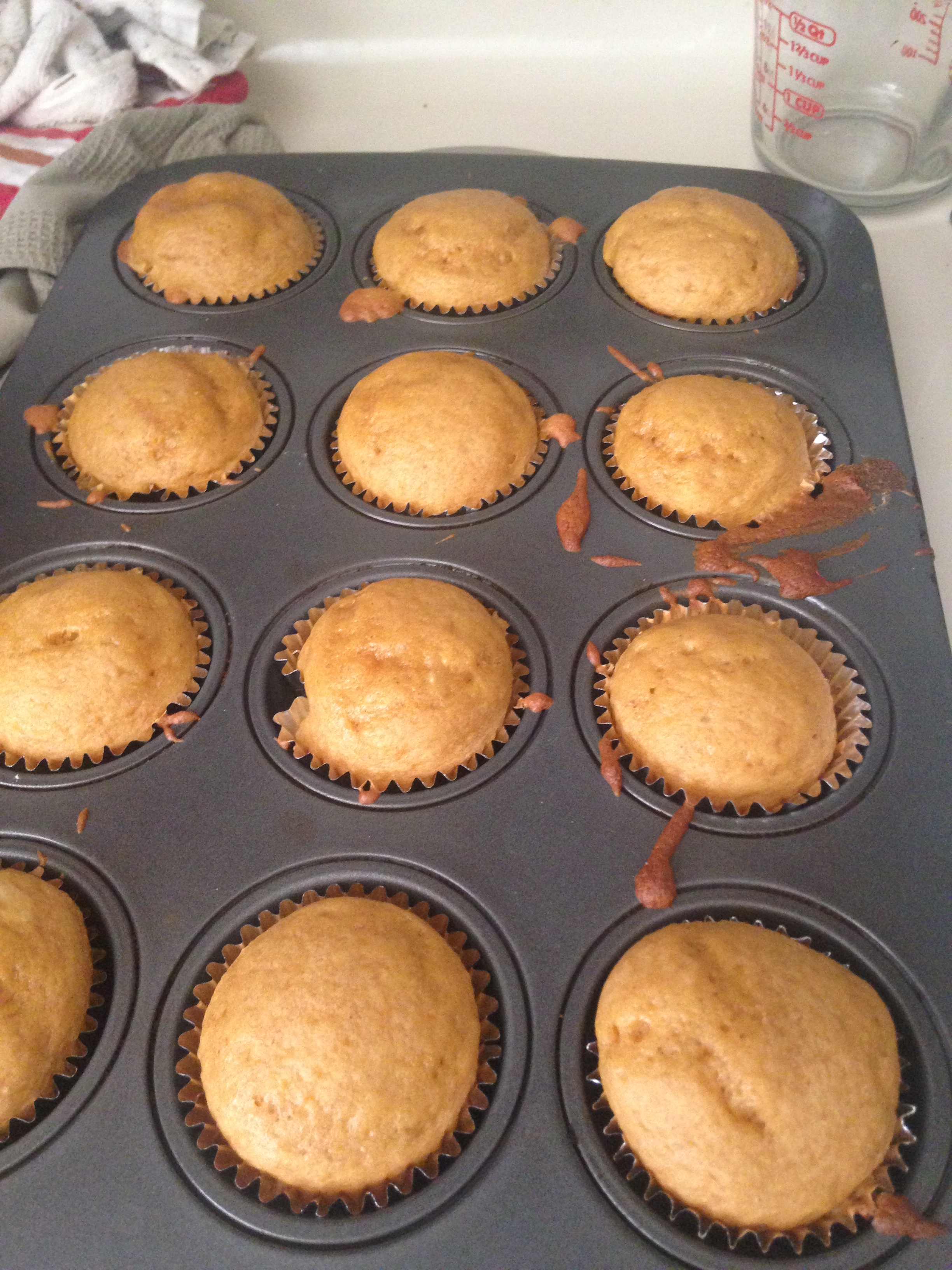 note how sloppy the cupcake tin is.. this is called frantically pouring batter while your toddler tries to get into the oven… but they still came out pretty well!