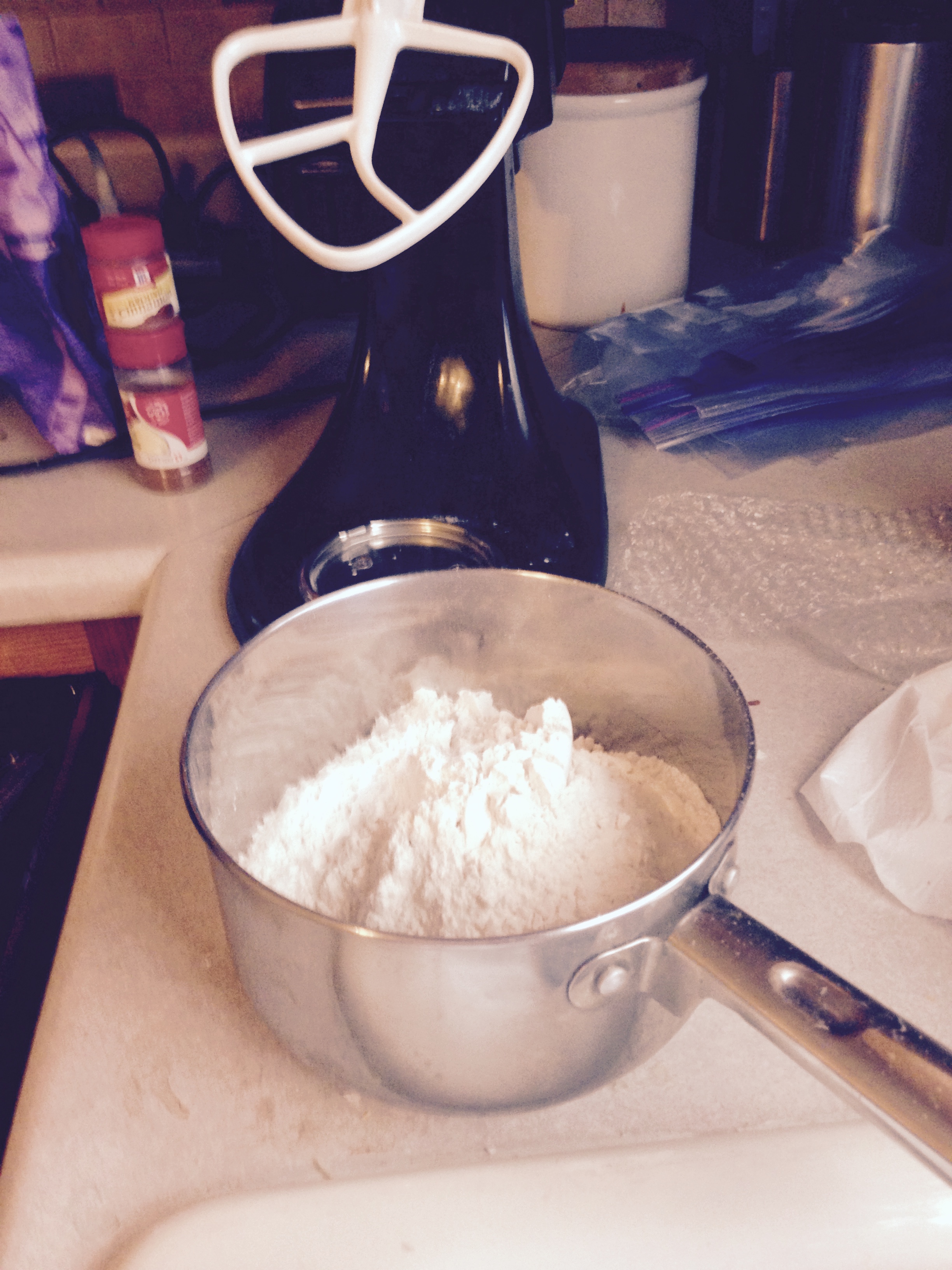 So… the lesson I learned from this week’s baking venture is that it’s hard to bake when your stuff is in boxes and you aren’t quite sure where you put everything. I ended up using a pot instead of a mixing bowl to mix my dry ingredients.