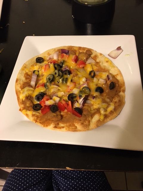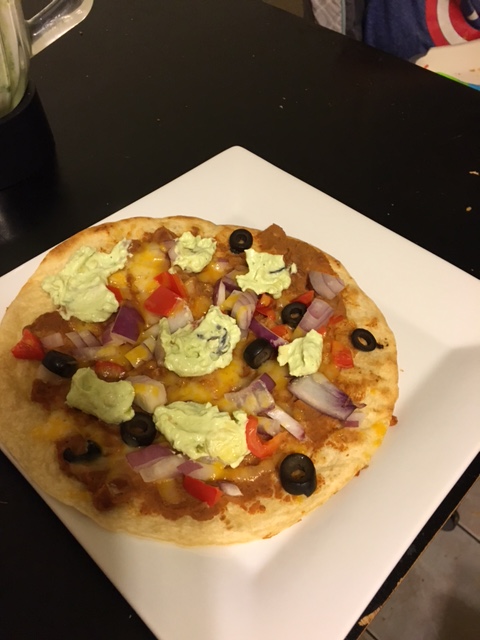 The recipe we will definitely be making again was for a Mexican Pizza and we only had to make two tiny tweaks to it- the first was that the recipe calls for refried black beans. We had black beans and we had refried beans but not refried black beans so regular refried beans it was. This probably made it a little less healthy, but we figured the black beans would not spread as a base the way the refried beans would. We also cut the tomato out of the recipe so we could use one recipe for our whole family. We did not miss them at all.