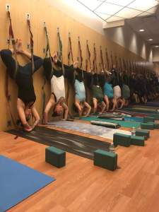 of the class and share it part of me wanted to be the one dissenting voice that said, “OH PLEASE DON’T!” But instead I made myself focus on how I couldn’t have been ready to even take this class back when I started coming back to yoga. I focused on the strength I’d built to do some of the poses that warmed us up before the release of just hanging and enjoying. I felt gratitude that my body had pushed through the group hand in hand ab work of crunches upside down at the wall and that I hadn’t pulled my neighbor down- something I’m pretty sure would have been the case even month or two ago.