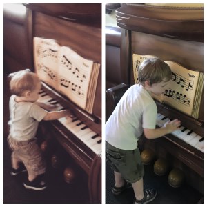 1 year old vs. 4 years old… just as obsessed with the goofy piano in toon town…