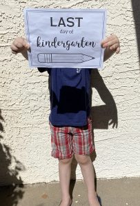 And in this completely unprecedented moment in my own life, and what I hope will be a once in a lifetime event for my kids… we’re still creating a little bit of normal in our end of year celebrations. I still took last day of school pictures. We will still eat ice cream for breakfast tomorrow, because that’s what we do as a family on the first day of summer vacation. We will still make a (modified) summer bucket list and have family Friday movie nights until the new school year starts, however that happens to look. I don’t think it will be quite so easy to pinpoint “the last weird picture” some day in the future when this is all over… but I hope that amidst the documented weird moments there are also a lot of images of love and resilience and creativity. Luckily, my kid just “Graduated” from a kindergarten class that gave him a wonderful start on all those things.