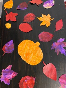 *Gratitude Leaves: This became more of a weekly activity- we painted one week, cut one week, and brainstormed a whole bunch of gratitude one week before hanging them up. This was one of my FAVORITE things we did in October. (aside from our Family Halloween Costumes!)