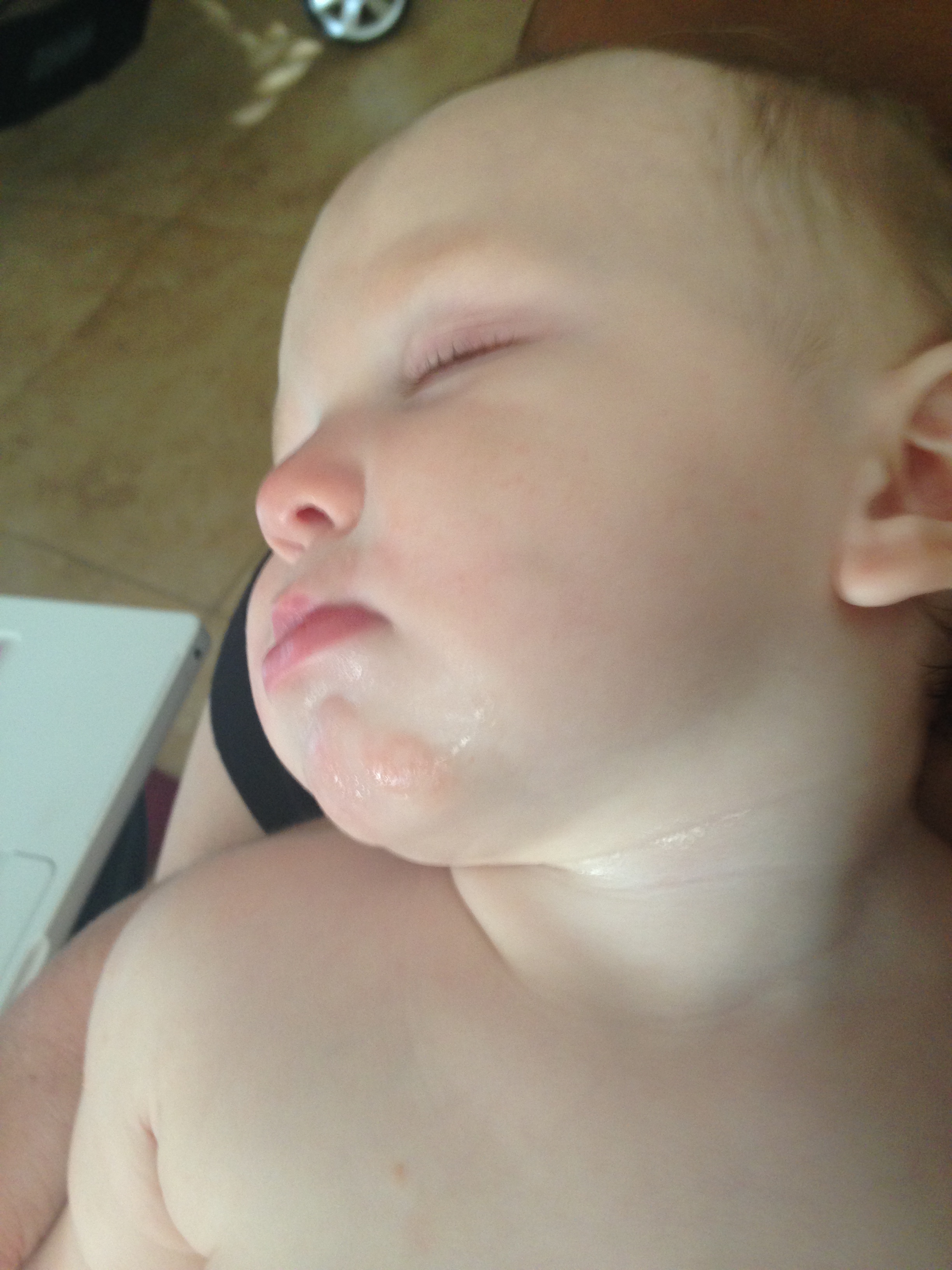 I was a little skeptical because the mixture looked lumpier than most things I bake, but the recipe called for it to look like that so I put it in the oven and tried to put my little guy down for a nap so I could get some sewing projects done while it baked. My nap plan worked a little TOO well and instead of having to struggle to start nap time, he fell asleep right in my arms!